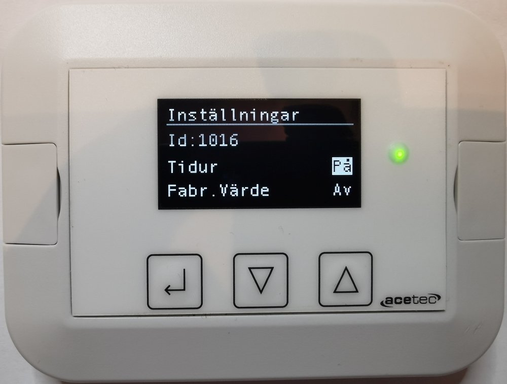 Ställ in driftläge och aktiveringstid och välj sedan raden “Spara/Tillbaka” och tryck Enter.