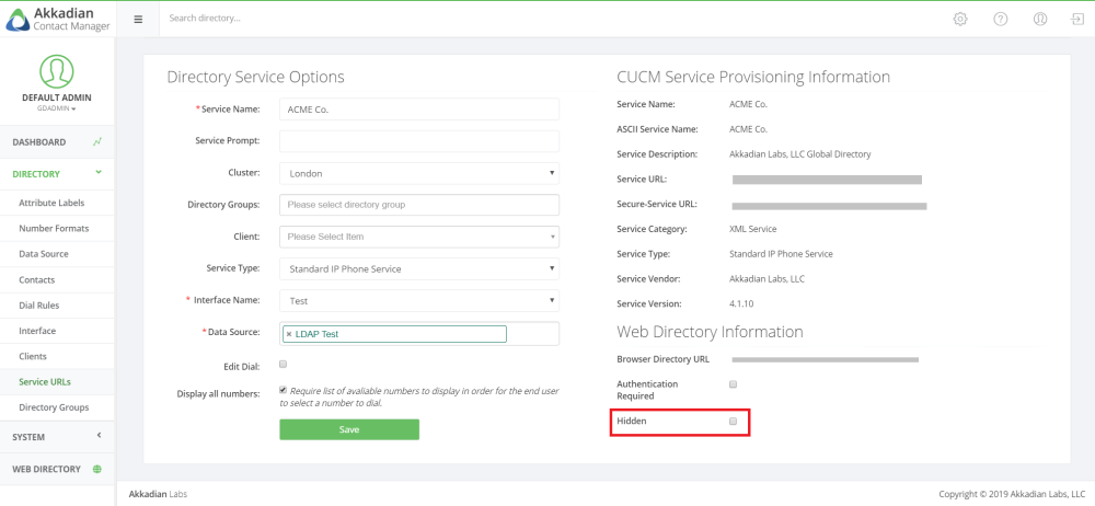 Admin have the ability to hide a Service URL within the web directory so other users will not be able to see it unless accessing said directory directly.