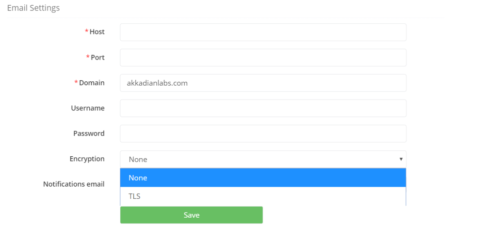 Admin Users can now choose between using TLS or None under System -> Email settings