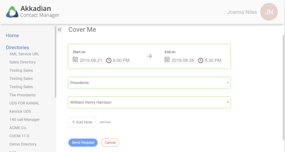 Cover me allows users to request another user to cover their phone calls for an allotment of time. End users can request coverage through the web directory.