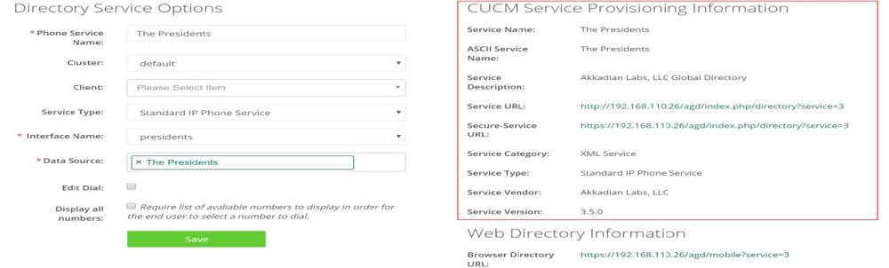 The generated service information in Akkadian Contact Manager corresponds to a CUCM required information to create a service.