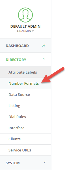 - Select Number Format from the Directory menu