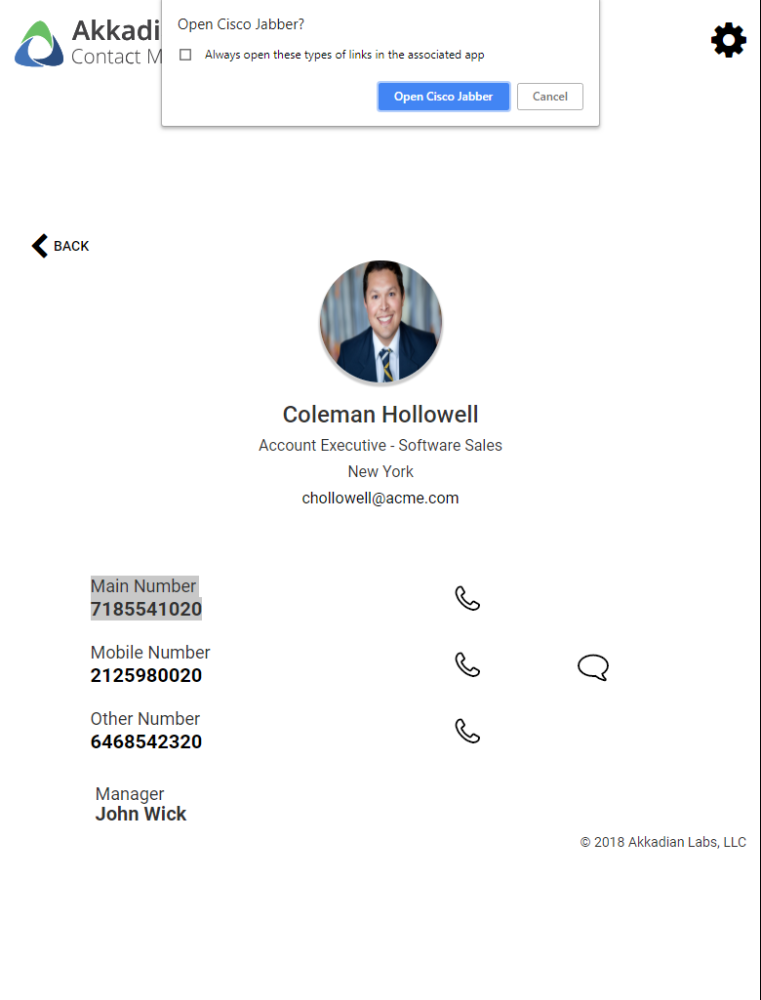 - When using the web directory via a computer’s browser, you may be prompted to select a default application or launch Cisco Jabber.