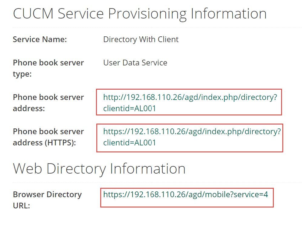 IP Phone Service Format: (http://{ HOSTNAME }/agd/index.php/directory?clientid=AL001&type=service &type=service&type=service&type=service &type=service&type=service &type=service