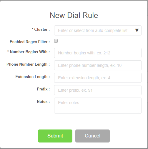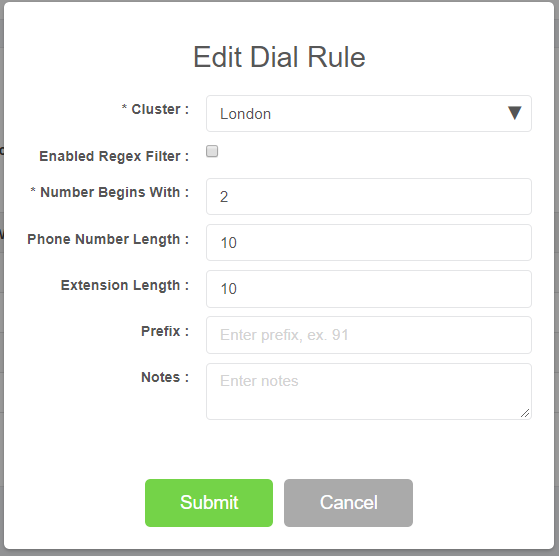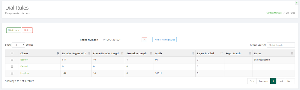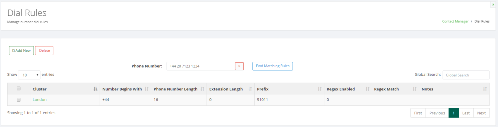 - Check the checkbox next to dial rule to be deleted and click Delete