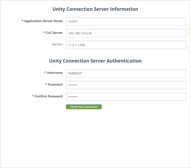 - Click Verify Unity Connection to validate the connection