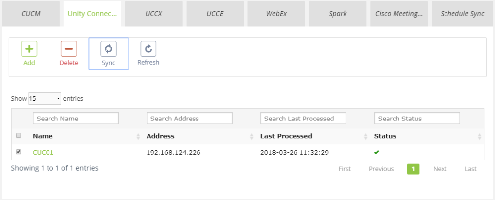- Click Back, select the CUC server and click Sync