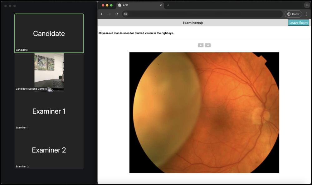 For security purposes, candidates must use a single monitor/screen configuration. No dual monitor setups. The screen will be comprised of the Zoom meeting (approximately 25%) and the oral exam platform (approximately 75%). Candidates can adjust their screen configuration based on their preferences, but are encouraged to select a suitable exam device with the screen size in mind.