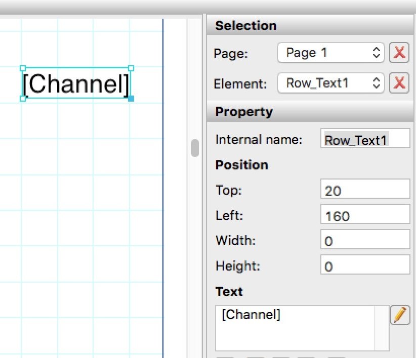 The text or placeholder to be printed is entered in to the text box in ‘Properties’. It may also be edited by double clicking on any element in the report template.