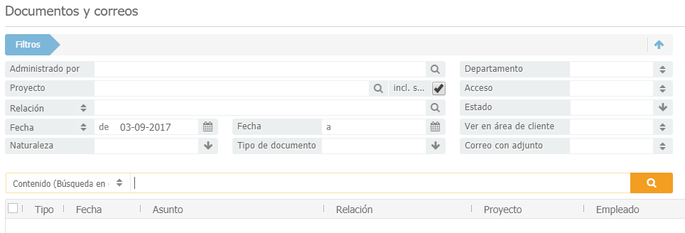 Los documentos y correos archivados se pueden encontrar fácilmente a través de Correspondencia -> Documentos & correos.