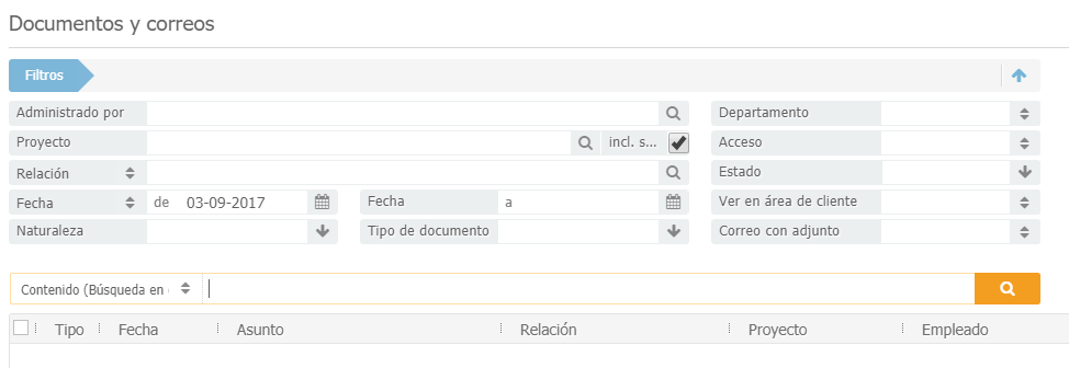 - Filtros: para filtrar, por ejemplo, en función de la fecha, el estado, la relación.