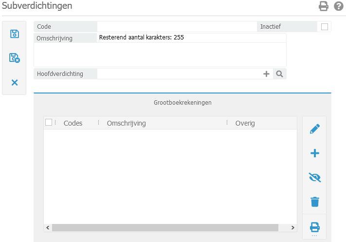 Administratie ➤ Stamgegevens ➤ Grootboekrekeningschema ➤ Subverdichtingen