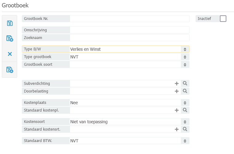 - Grootboek Nr.: Voer hier een uniek nummer in.