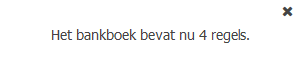 - Klik op “Importeer”. De mutaties worden nu geïmporteerd in het (nieuwe) bankboekstuk. Indien gereed, wordt het scherm afgesloten en de volgende melding gegeven, afhankelijk van de hoeveelheid regels:
