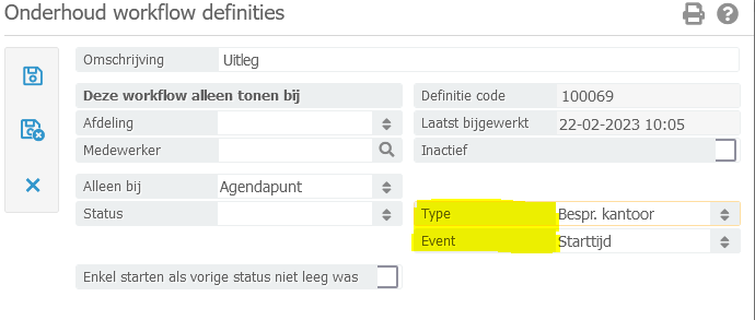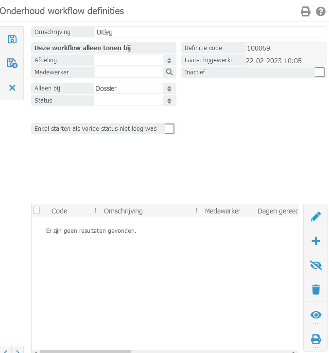 Afdeling – Hier kan optioneel aangegeven worden voor welke afdeling de workflow gebruikt moet worden
