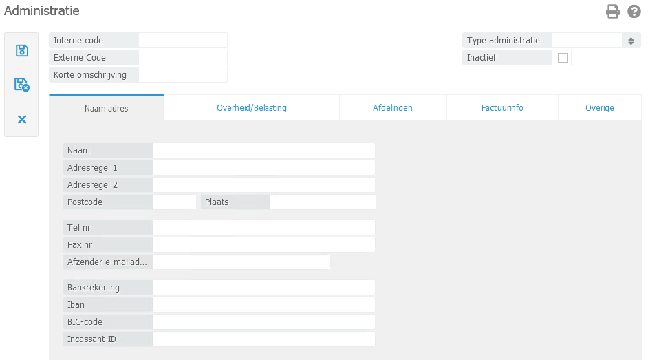 - Type administratie: Selecteer het gewenste type.