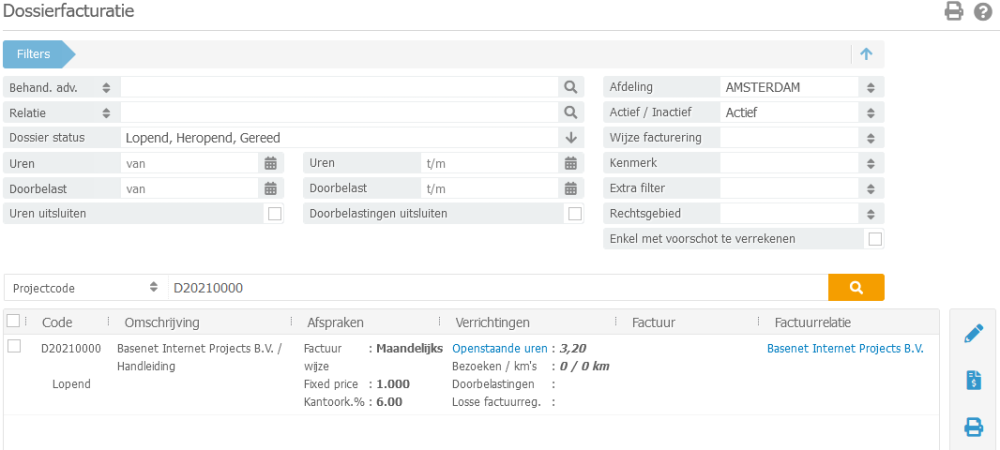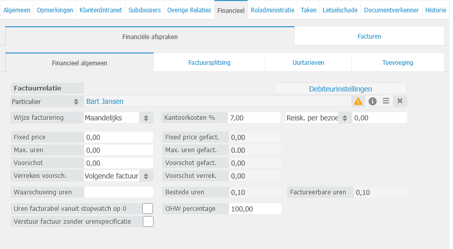 - Open in het gewenste dossier de tabbladen zoals hieronder aangegeven:
