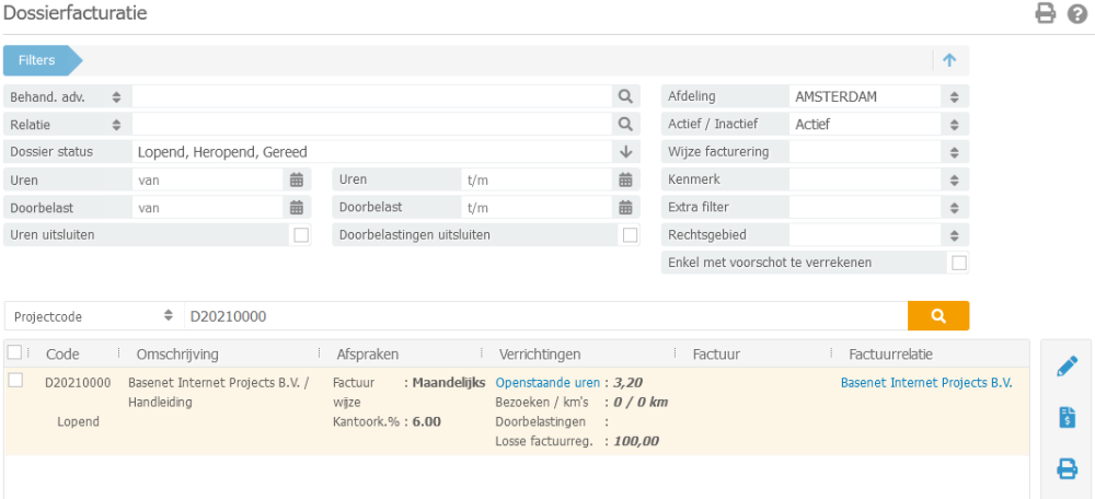 - Met het veld ‘Factureerbaar vanaf’ kunt u eventueel een datum invoeren waar u achteraf in het facturatiescherm op kunt filteren.