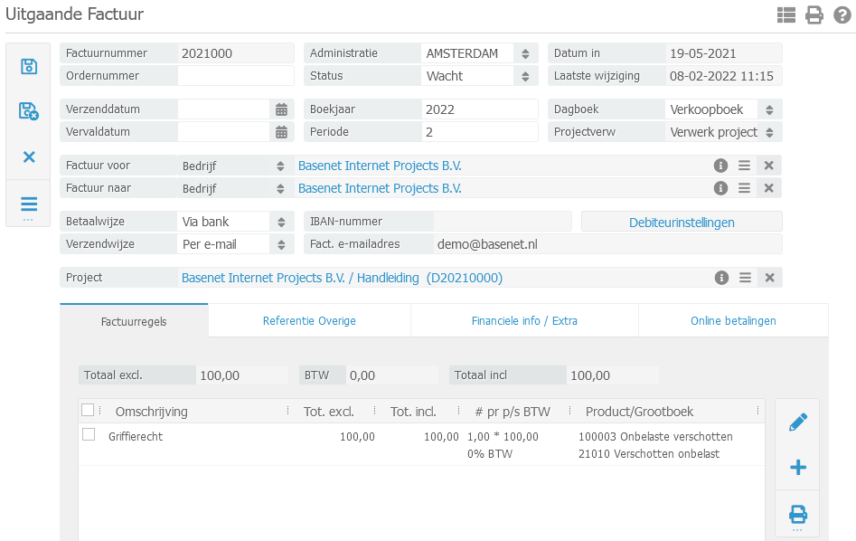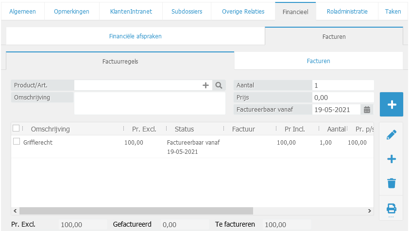 om de factuurregel aan te maken zoals te zien in onderstaand scherm.