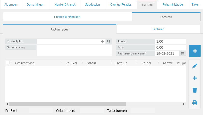 en vervolgens op . Hierbij zal het facturatiescherm worden geopend.