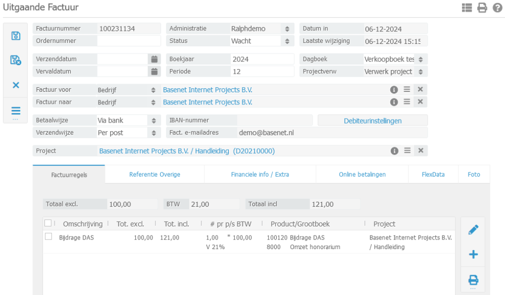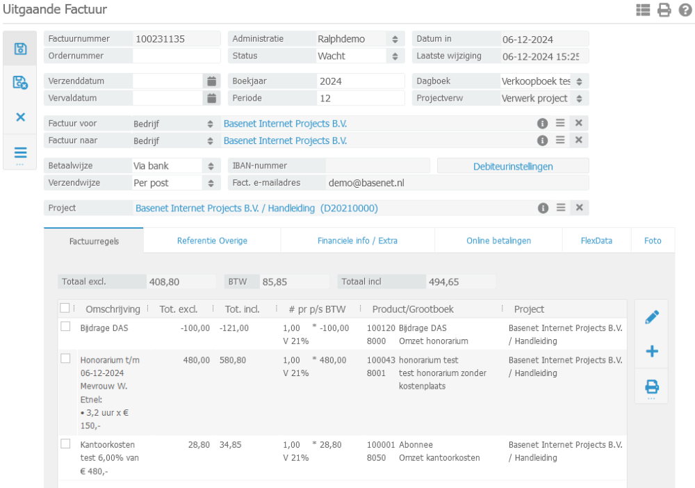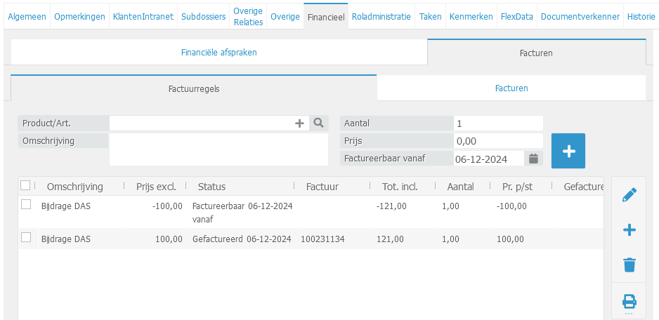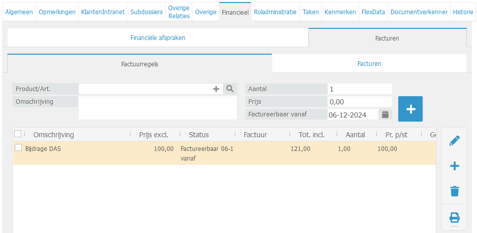 om de factuurregel aan te maken zoals te zien in onderstaand scherm.