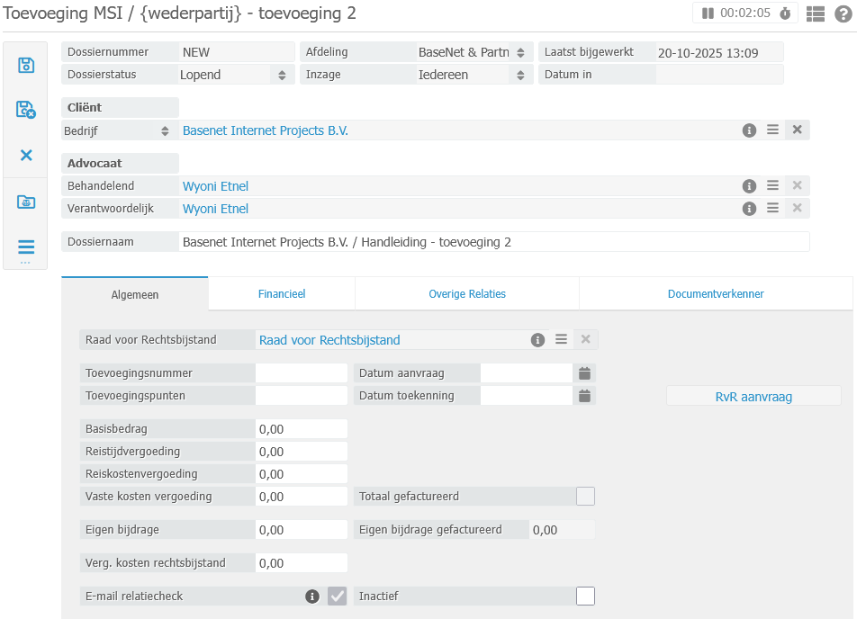 - Deel 2 Het factureren naar de tweede toevoegingsrelatie door middel van een extra onderliggend ‘subdossier’