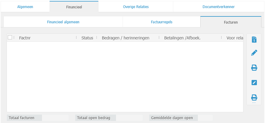 - Open in het gewenste dossier de tabbladen zoals hieronder aangegeven en koppel de eerste relatie als de factuurrelatie (alsook bovenaan als de cliënt):
