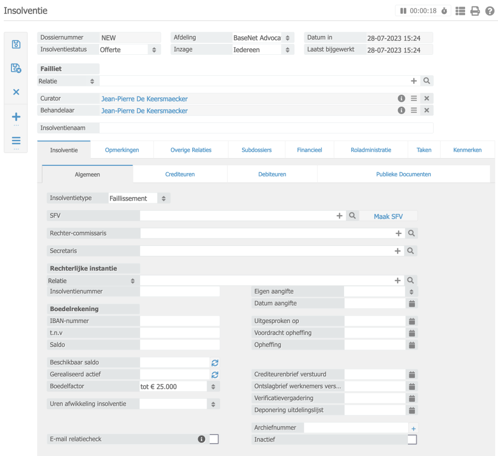 Een insolventie dossier aanmaken