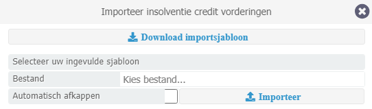 Tabblad Insolventie ➤ Crediteuren en Debiteuren Hierin kunt u de vorderingen invoeren, dit kan eventueel middels een import. Klik daarvoor op het upload icoon