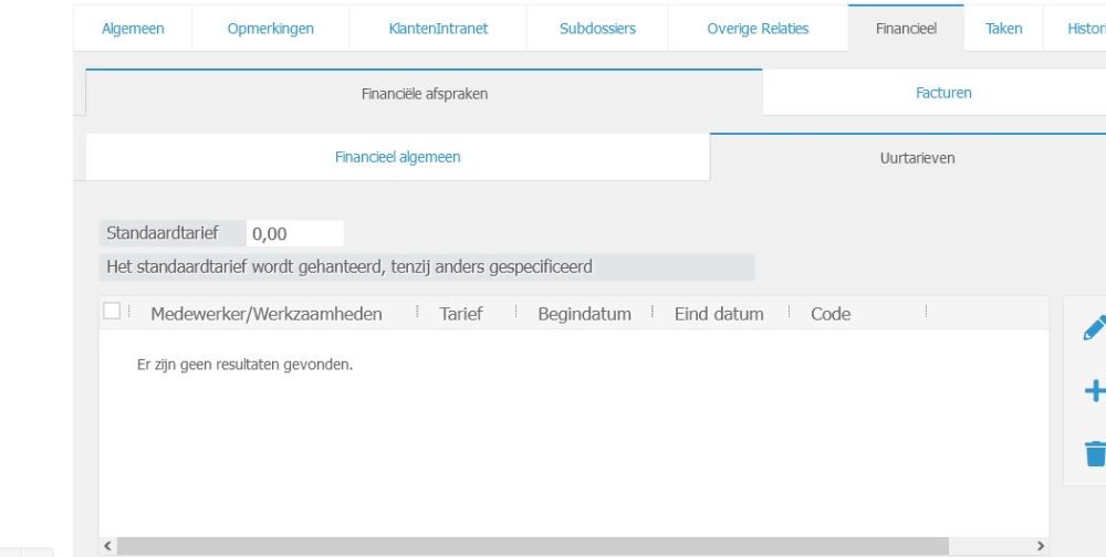- Standaard uurtarief in het dossier/project (zie tabblad