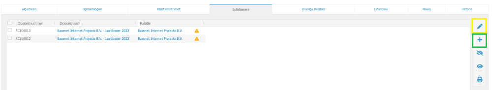 In het tabblad Subdossiers is het mogelijk subdossiers aan te maken via het