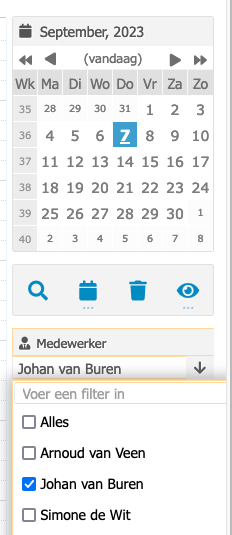In de multi-agenda zelf kunt u vervolgens aanvinken welke medewerkers u de agenda van wilt inzien: