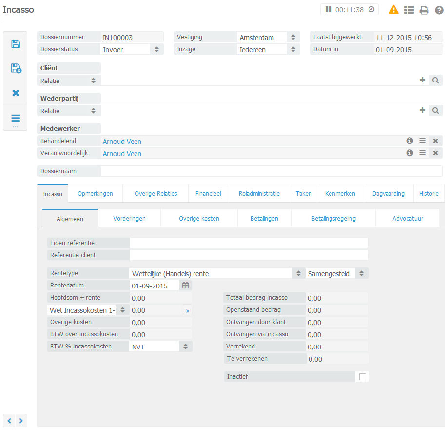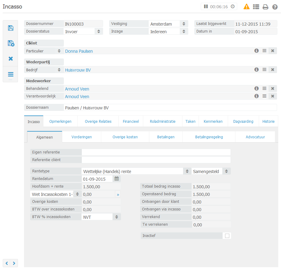 Een incassodossier dat bijgewerkt is ziet er als volgt uit: