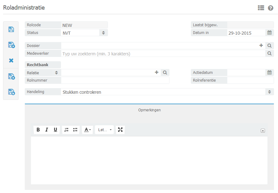 Beheer ➤ Bedrijfsinstellingen ➤ Advocatuur ➤ Rol administratie