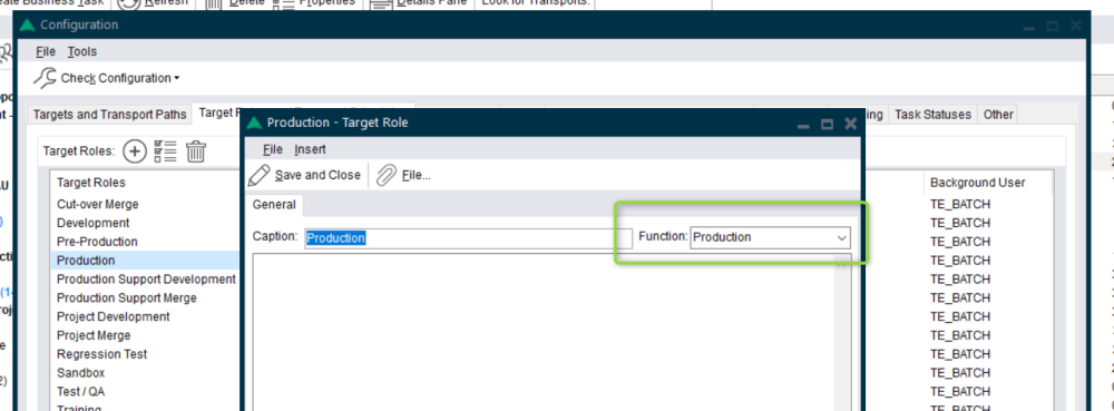 To configure Future Scheduled Imports, a customers ‘Production’ Target Role must be assigned to the ‘Production’ Function within Windows GUI Configuration. It is this function that tells ActiveControl which is your Production system . No other Target Roles need to be assigned to a Function. (the Development, Test and Merge functions are for future ActiveControl development, and currently do not drive anything within the product)