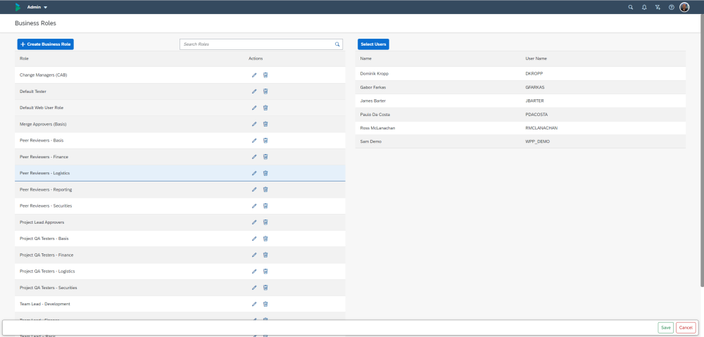 Business Roles (and User assignments) are used within various parts of ActiveControl, including: