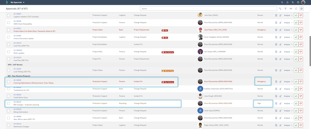 Priorities within ActiveControl do not necessarily drive the workflow (unless specifically configured via the Rules Engine), however High and Emergency priority Business Tasks are giving more visibility within List screens and the Global View, by being presented in amber and red font respectively.