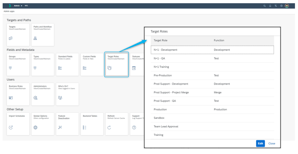 When creating a dependency between transport requests, ActiveControl ensures that the dependent transport request will not be imported into a system until its dependencies have. With the configuration of target roles, it is possible to assign multiple systems in different transport paths the same role. This will ensure that the dependent transport request is not imported into a system with a specific role until all its dependencies are imported into another system with the same role.