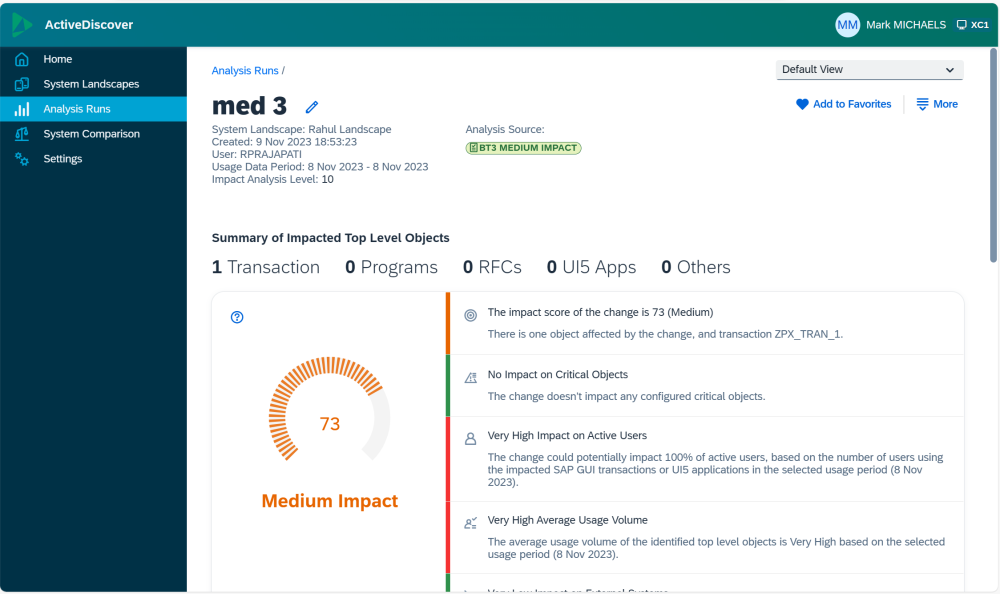 If detailed analysis of the ActiveDiscover impact assessment score is required, then clicking on the “More Details” text on the ActiveDiscover “Impact Analysis Summary” dialog box will redirect to the main dashboard of ActiveDiscover by opening a new tab in the existing browser.
