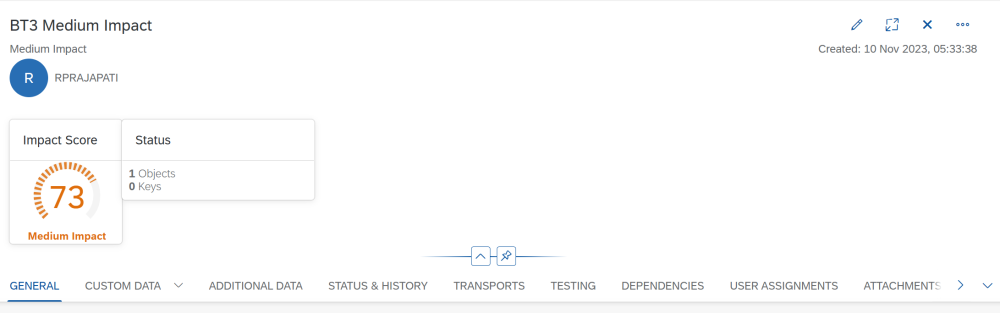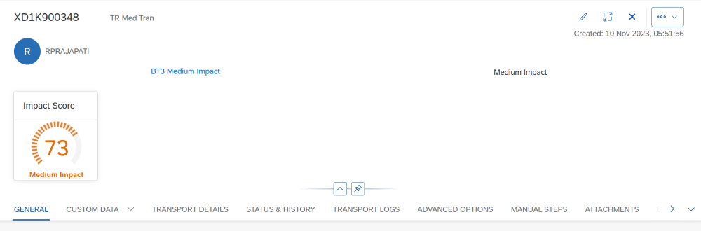 Figure AC18-1: ActiveDiscover impact assessment score as a gauge chart on the header section of a Transport Form