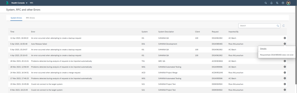 System Errors are generated in ActiveControl in the even of issues during Imports of transports (for example RC12 type issues).