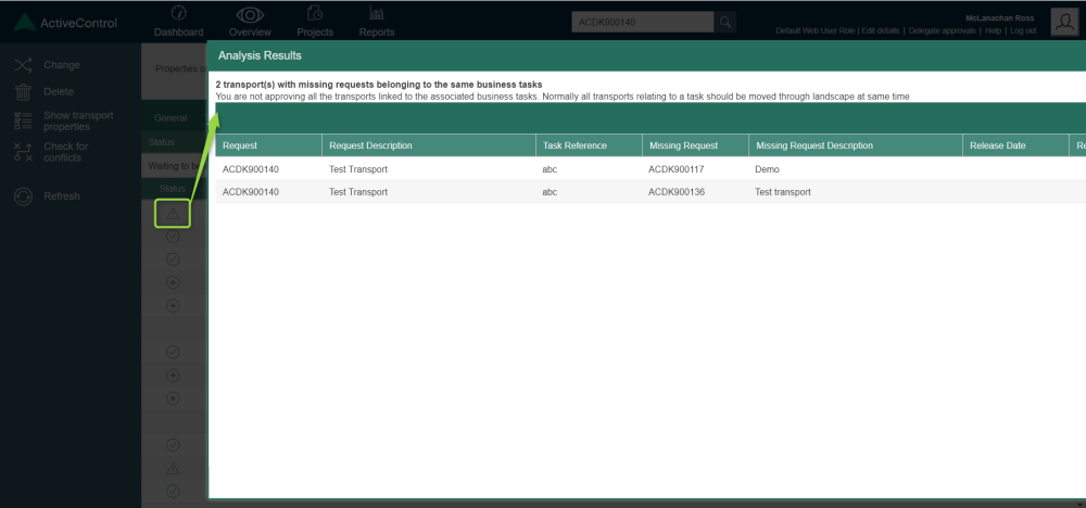 Figure: Clicking on Status ‘exclamation’ icon now opens Historical Analysis Warnings