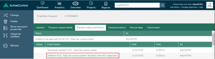 Several customers reported in recent ActiveControl releases that it was unclear if a Transport was signed off individually as part of Partial Testing scenario – or as a Result of Business Task-level test signoff.