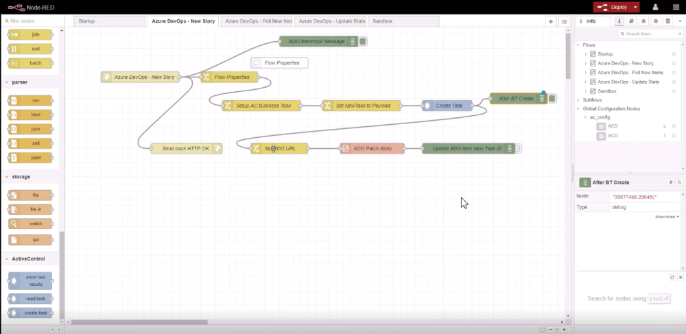 Node-RED is a programming tool for wiring together hardware devices, APIs and online services in new and interesting ways. It provides a browser-based graphical editor that makes it easy to wire together flows, thus Basis Technologies believe will allow our Delivery Consultants and Customers to become much more self-sufficient in the setup of new and existing Integrations between 3rd Party tools and ActiveControl.