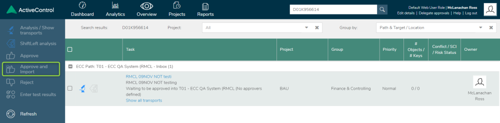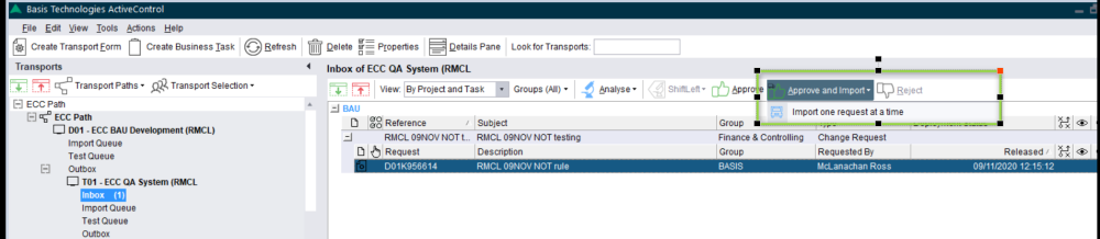 4) That DDIC objects are not contained in both the i) transports already being imported, and ii) the transports on which the ‘Approve and Import’ is being performed.