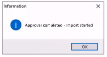 Figure: Message presented to Approver to tell them that the Parallel Import has started.