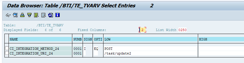 As well as the usual SAP-based Integration table setup, the following is required in /BTI/TE_TVARV