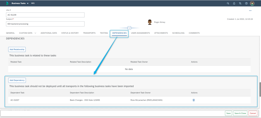 ActiveControl 8.50 (September 2021) introduced a new concept of Business Task ‘Relationships’, whereby users could relate changes that were functionally related even when there were no specific technical dependencies. This additional capability was added to help customers ensure they moved Business Tasks with ‘functional dependencies’ through the landscape at the same time, even when there might not be any breaking technical dependencies. Business Task Relationships does not have any impact on the actual deployment sequencing calculation.