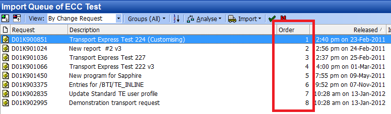 - Block Import / Import All in TE’s default sequence: This imports the transports using the block import method in the TE calculated sequence even if the screen sequence is different. TE pre-sorts the transports prior to import