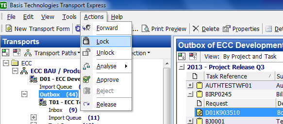 This can also be done by opening the transport form and using the lock checkbox at the bottom of the screen: